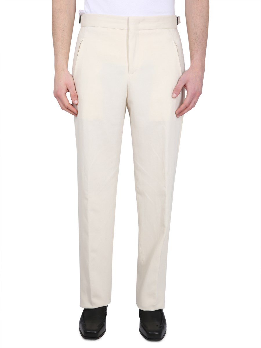 composizione- CHIUSURA CON BOTTONE, GANCINO E ZIP- STRAIGHT LEG- 75% VISCOSA, 14% LINO, 11% COTONE- IL MODELLO È ALTO 185 CM E INDOSSA LA TAGLIA 48 IT
