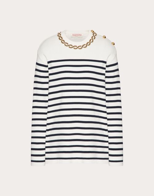 Maglia in Cotone Ricamata - Dettaglio ricamo treccia - Dettaglio bottoni - Cotone(100%Cotone) - Lunghezza 69 cm da punto spalla per la taglia S IT - Lunghezza manica 78 cm da centro dietro per la taglia S IT - La modella è alta 176 cm e indossa una taglia S IT - Made in ItalyIl look è completato con una borsa Valentino Garavani Locò e scarpe Valentino Garavani Rockstud.